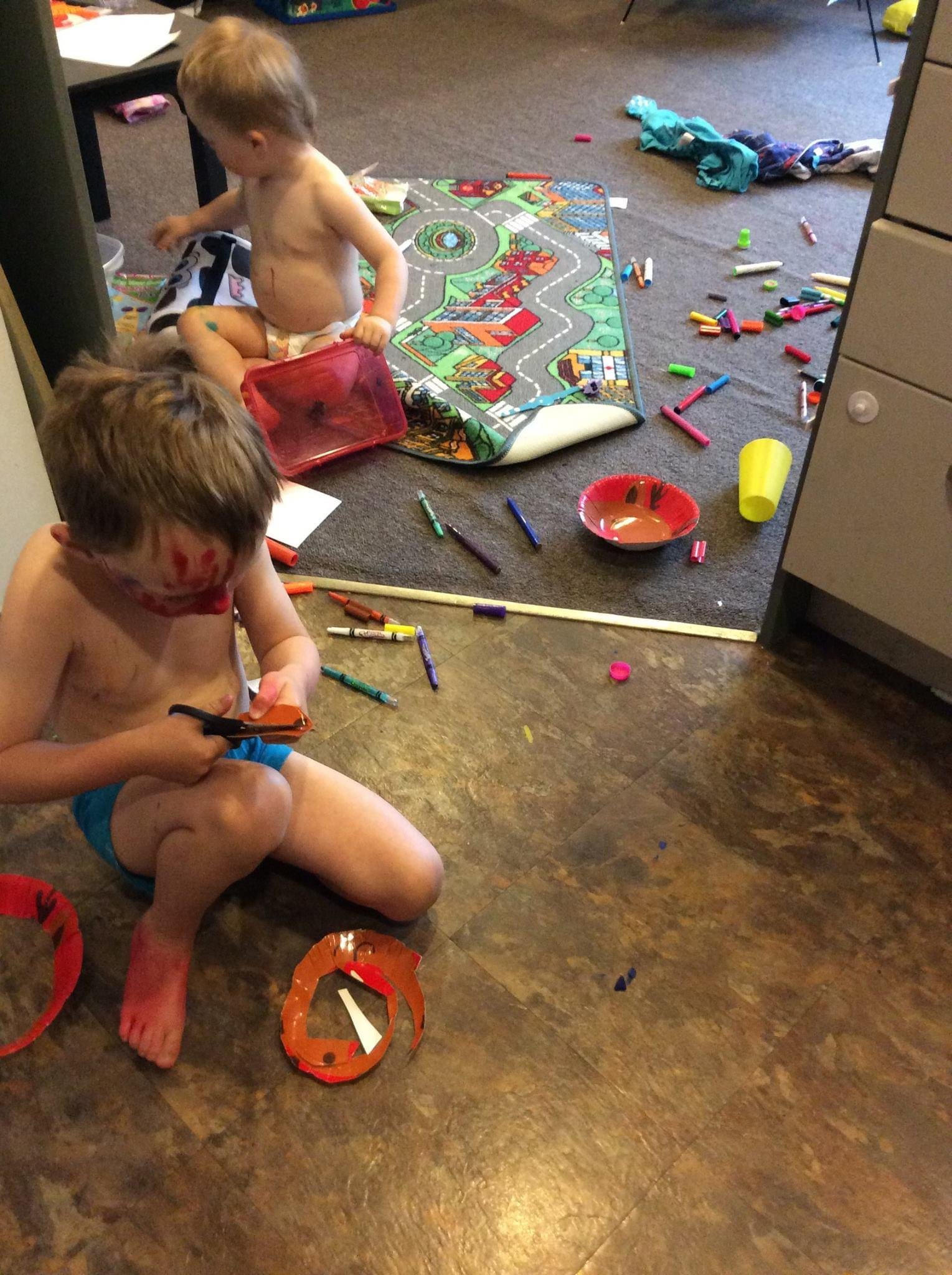 Mostly, it was me saying: ‘I'm sorry I'm sorry I'm sorry’ as my kids screamed and threw things at each other. I felt constantly inadequate as I watched other children drawing in colouring books as my child drew on his arms, his feet, the floor, the chair, the desk and my hand as I tried to wrestle the pen from him. I feel like I spent so much of that time just trying to stop my kid eating a glue stick.