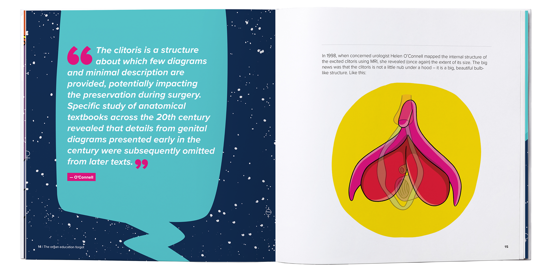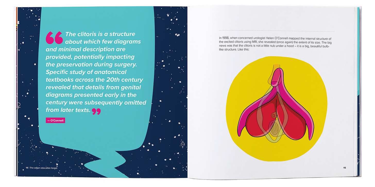 “Most people don’t even know the clitoris is an actual organ, that it is hidden under the surface. That lack of knowledge has really big impacts, from women with clitoral nerve damage because some surgeons aren’t educated to kids that can’t name their own body parts which means not being able to communicate about them”.
