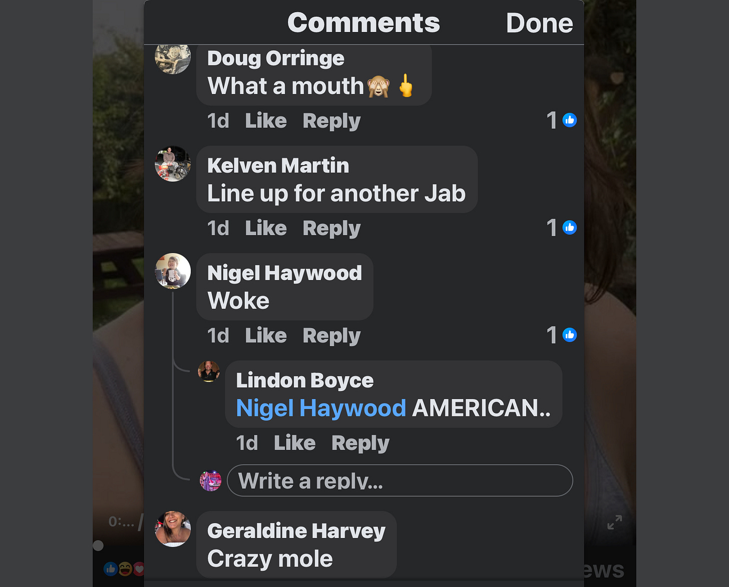 Michael Derrett says: “not born here then get out You shouldn’t be able to have any say girl”.
